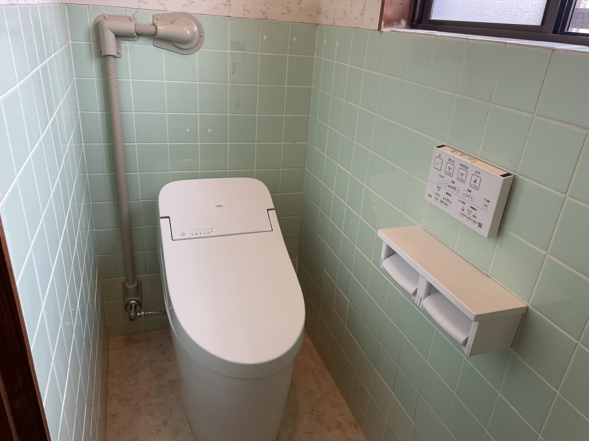 トイレリフォームの様子です。腰掛便器に取替をしたい!とのご相談を頂きました。高齢になってくると和便を使用するためにしゃがむ事が大変!!との意見を頂きました。 確かに、和便を使用する体勢は足が悪かったりすると、なかなかキツい体勢ですよね・・。