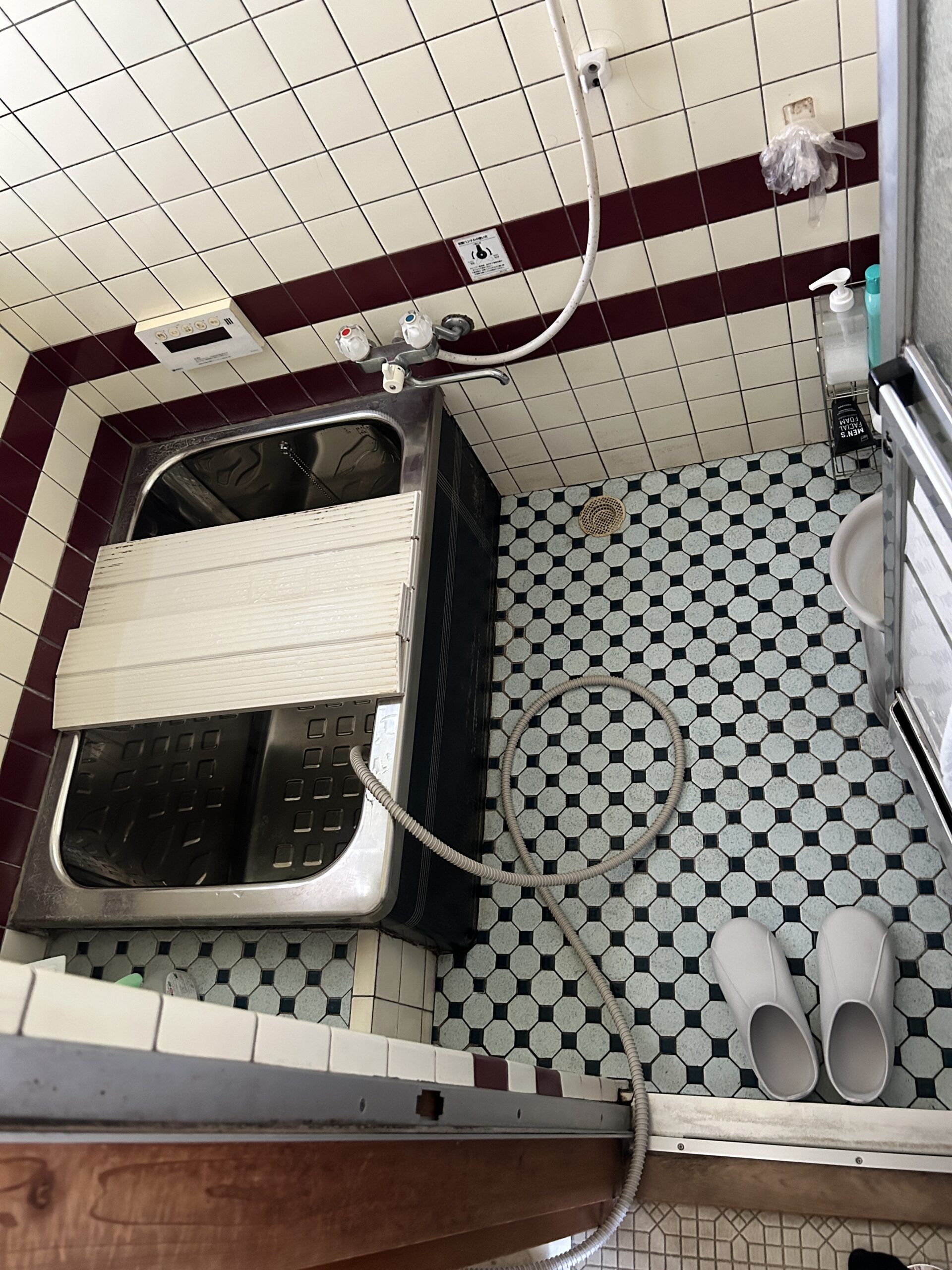 壁・床共タイル貼りのお風呂ですね!どうしても冬は在来工法のお風呂ですと寒くなってしまいますね。 ユニットバスにして冬も暖かいお風呂に取替していきます♪