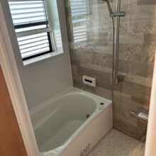 脱衣場と洗い場の段差も解消です。これで、躓いて転倒したりする恐れもなくなりました。 介護保険適応工事も山六設備にお任せください♪