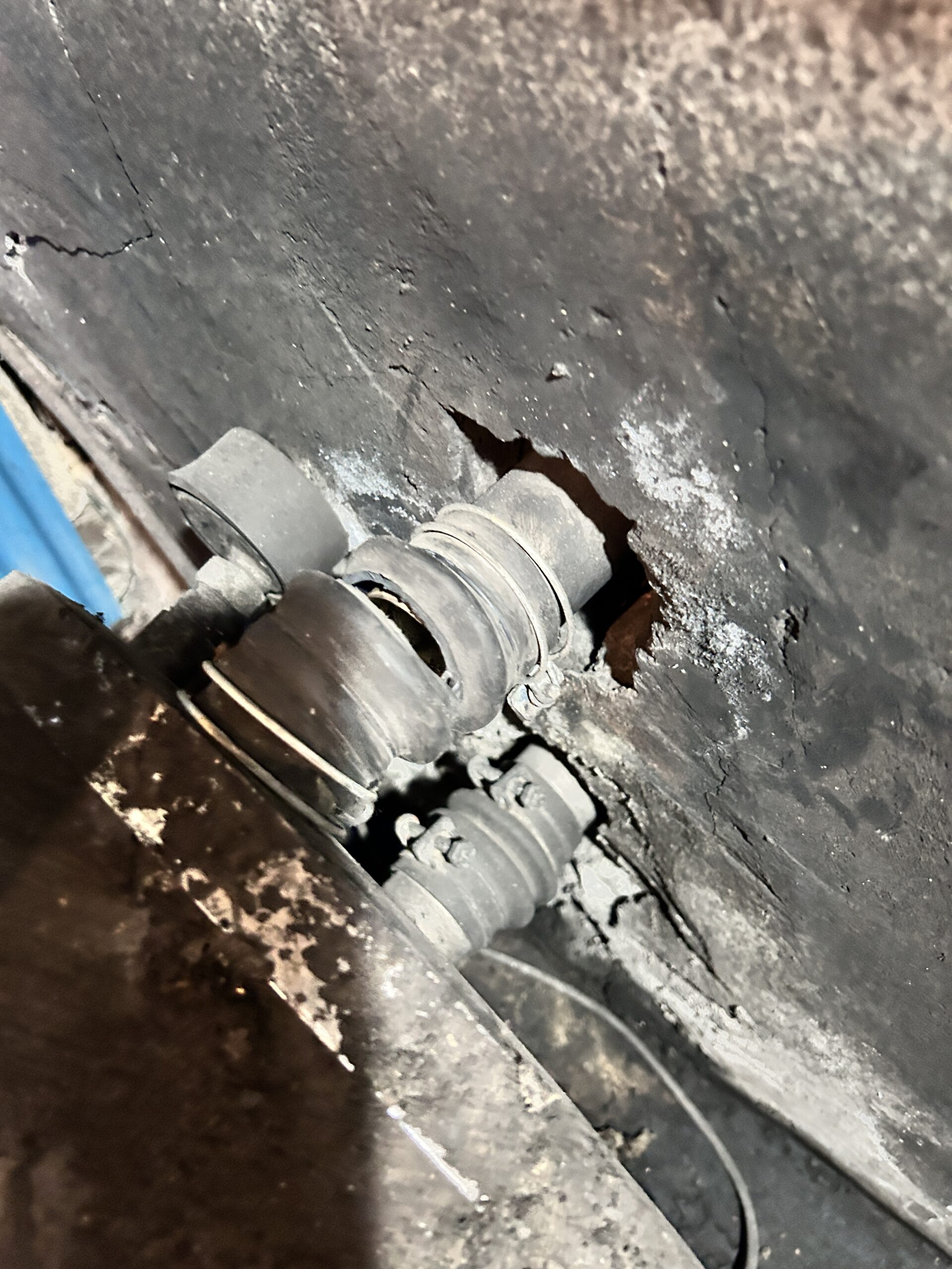 接続のゴム接手も断裂です!凍結の膨張圧力はすさまじいですね・・・