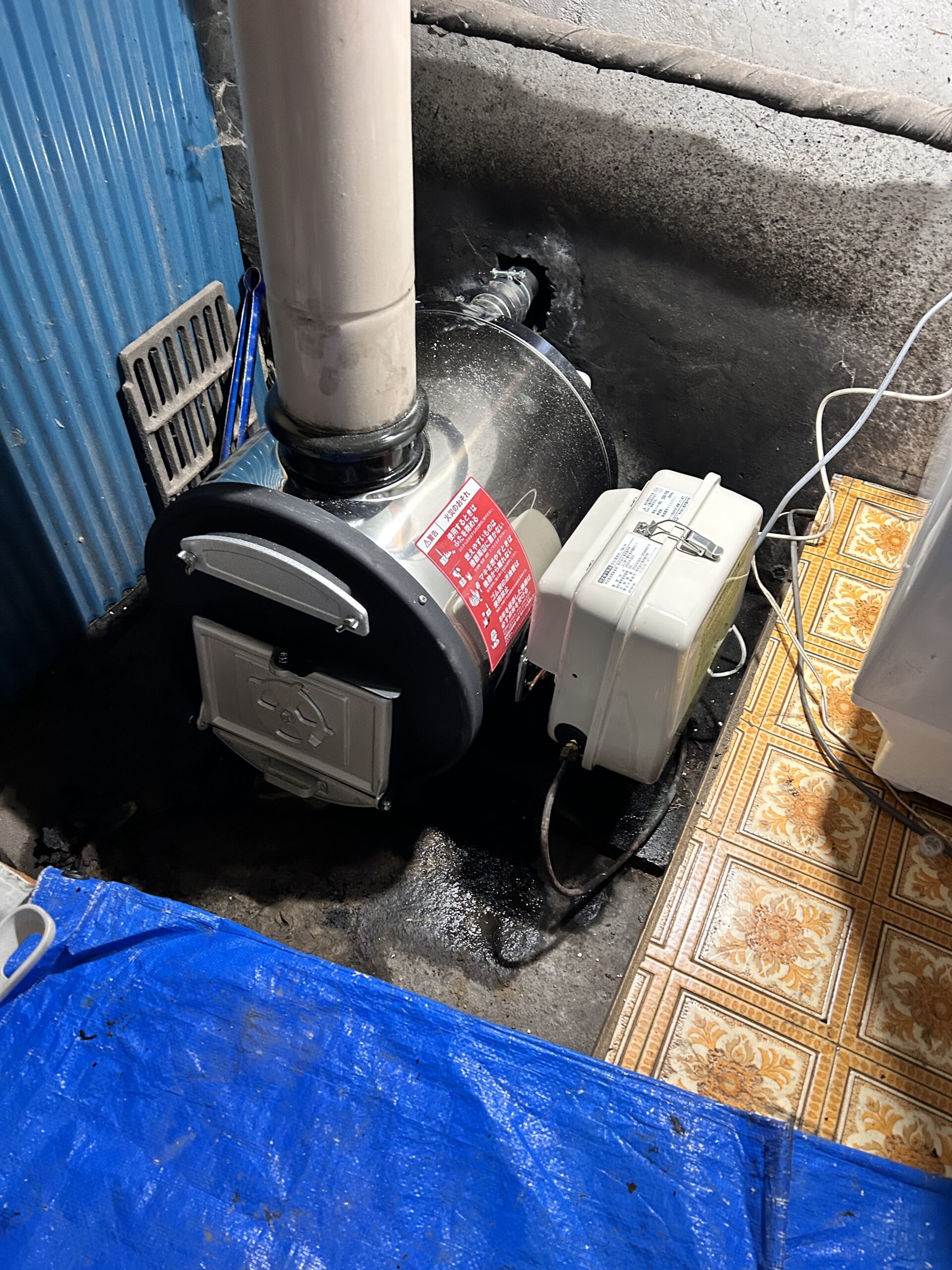 新しい風呂側を設置。 灯油バーナーも付いている兼用型なので、薪がなくてもお風呂を沸かせられます♪