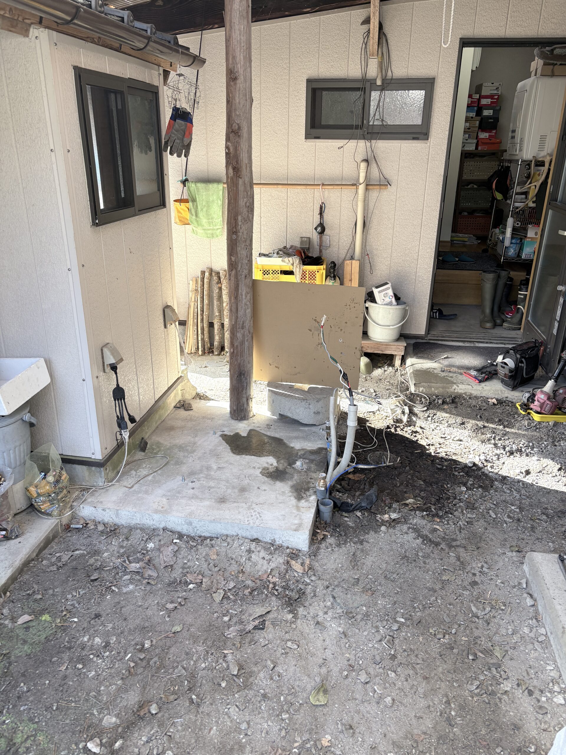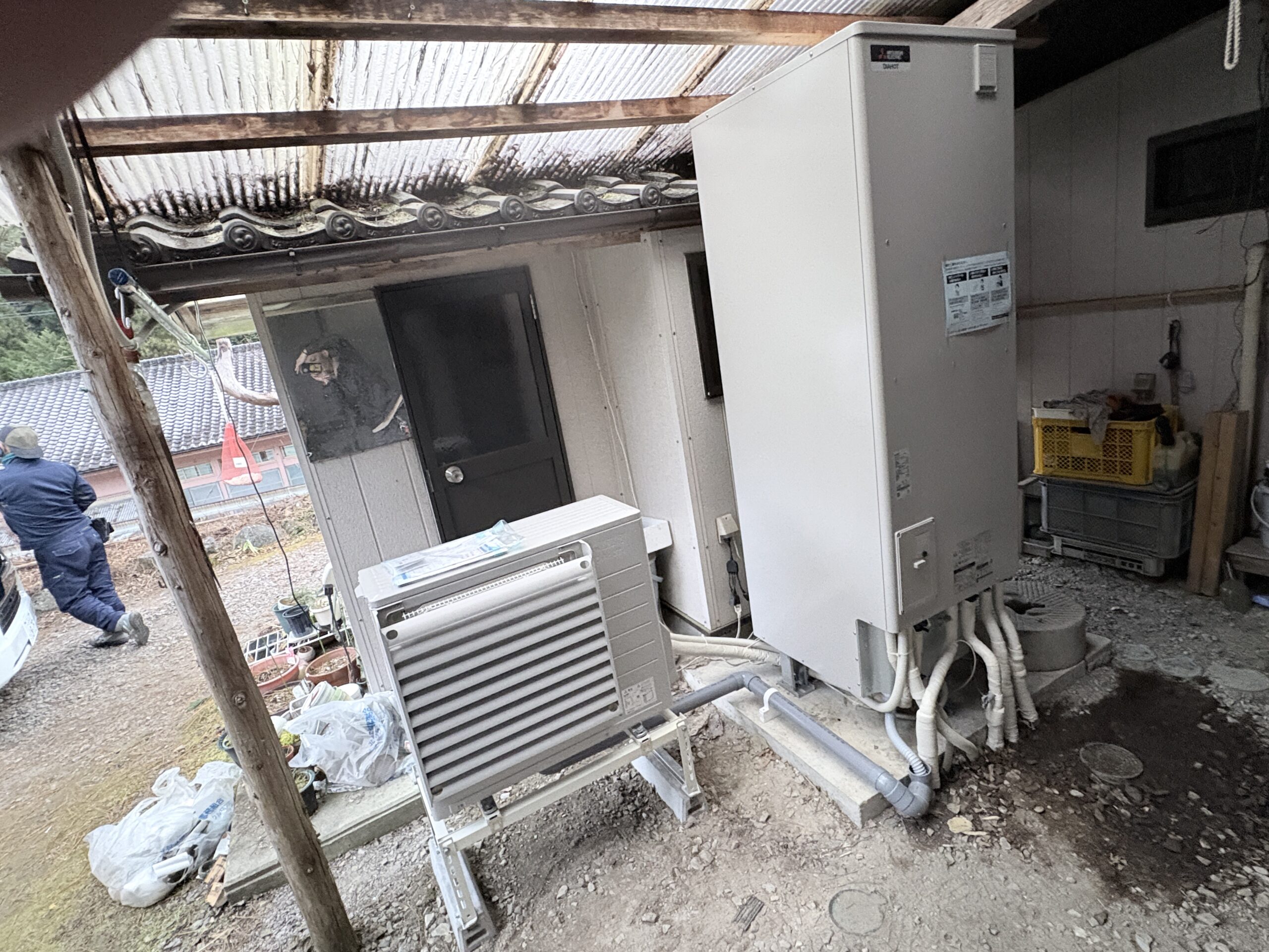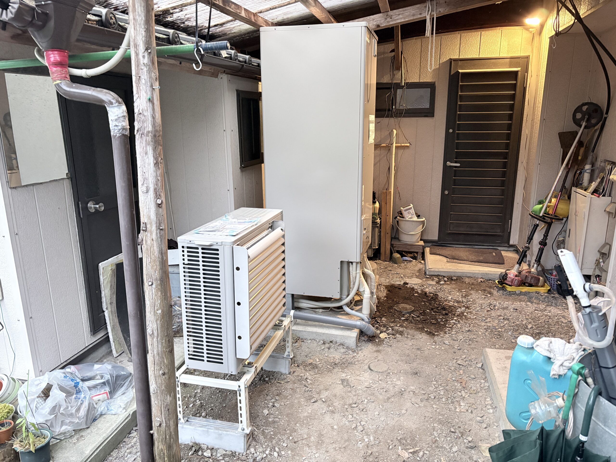 既設のエコキュートと仮設給湯器を撤去して・・・
